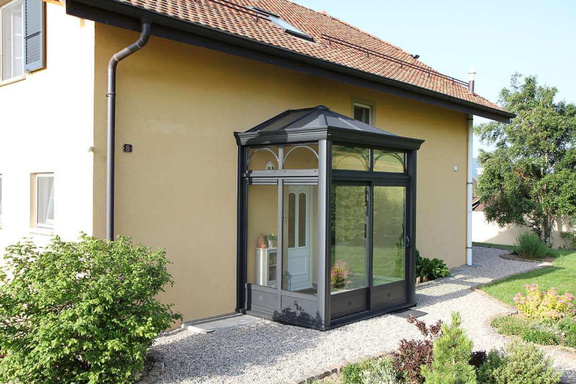 Le sas d'entrée en aluminium est la transition idéale entre l’extérieur et l’intérieur de votre maison, agissant comme une petite véranda multifonctionnelle que vous pouvez utiliser comme lieu de bienvenue, sanctuaire de lecture, espace de jeux, solution de rangement ou une serre personnelle. Non seulement il embellit la façade de votre habitation, mais il vous protège également des intempéries, vous apporte plus de luminosité et améliore votre isolation thermique et acoustique. Élevez l'expérience de votre seuil avec un sas d'entrée sur mesure.